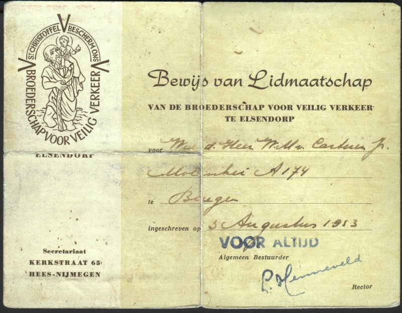 ![]() 1953 - Bewijs van lidmaatschap voor altijd.... (voor- en achterzijde) (met dank aan Wim Jaegers) |